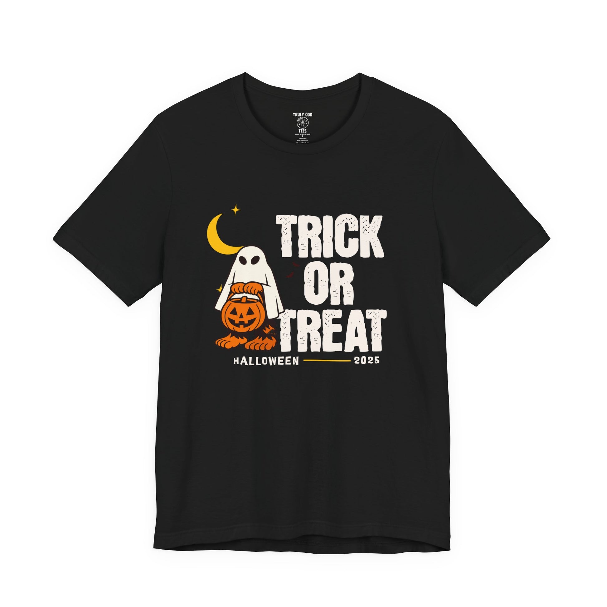 Get into the Halloween season and trick or treat with bigfoot with this Bella Canvas Tee featuring a Truly Odd Sasquatch Trick or Treater. Perfect for those who love quirky and fun Halloween-themed apparel. Ideal for adults looking to add a playful touch to their outfits during the fall season and Halloween celebrations.