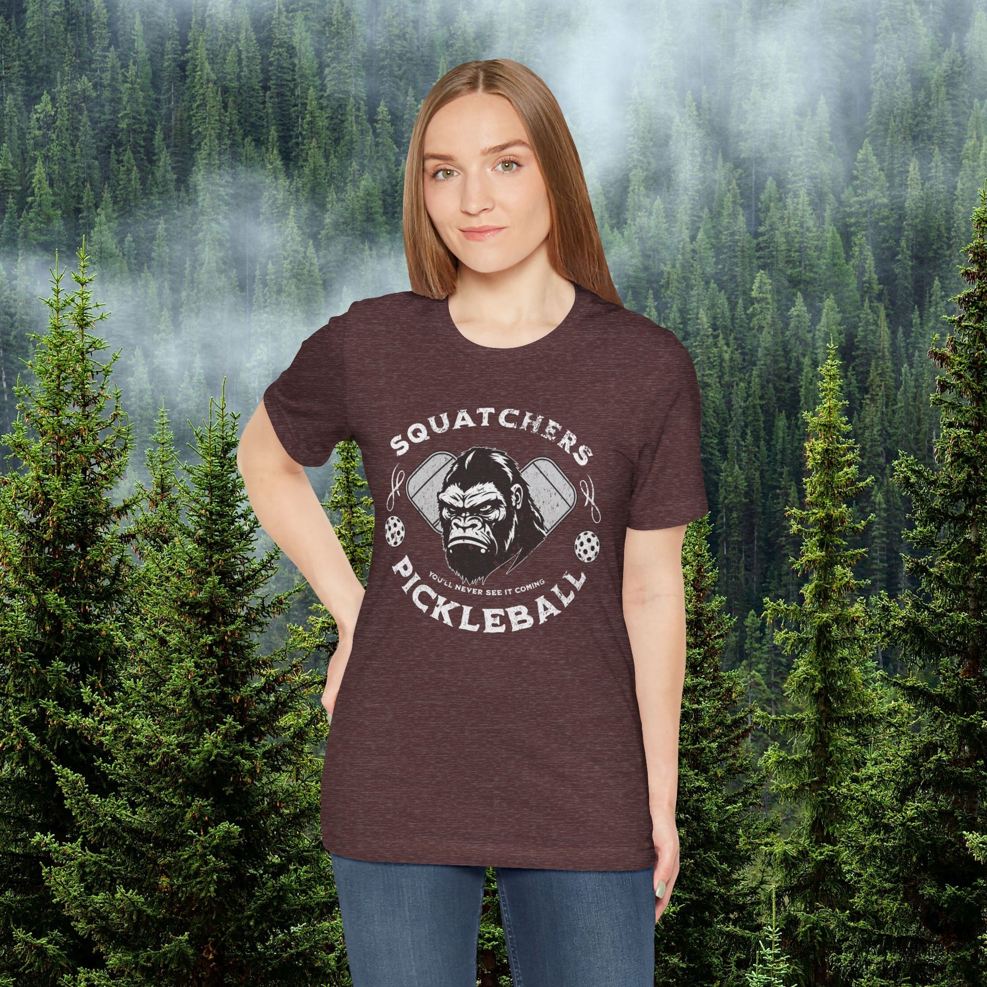 Bigfoot Pickleball Unisex Tee, Sasquatch Fan Shirt, Funny Pickleball Tee, Cryptid Enthusiast Gift, Hiking Shirt