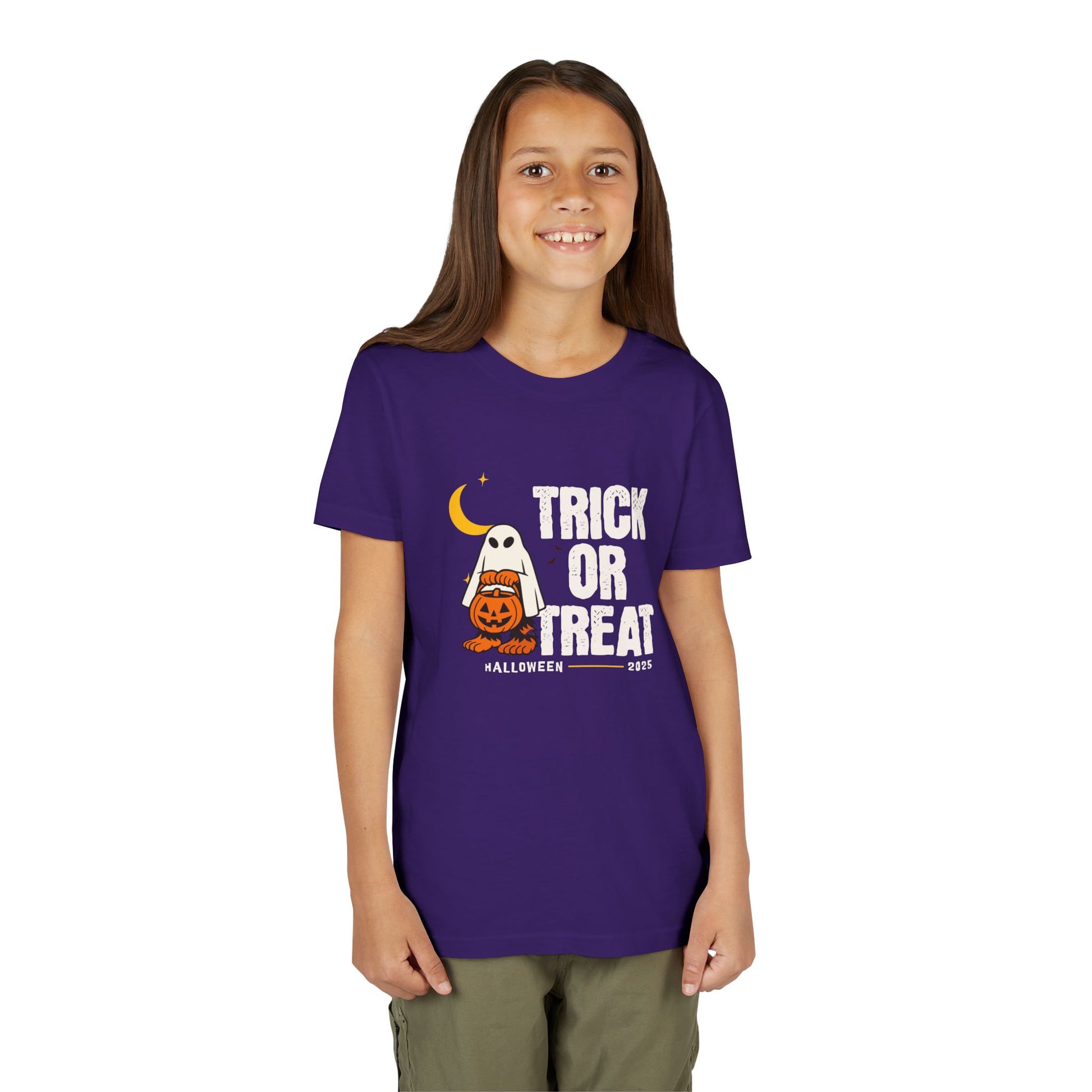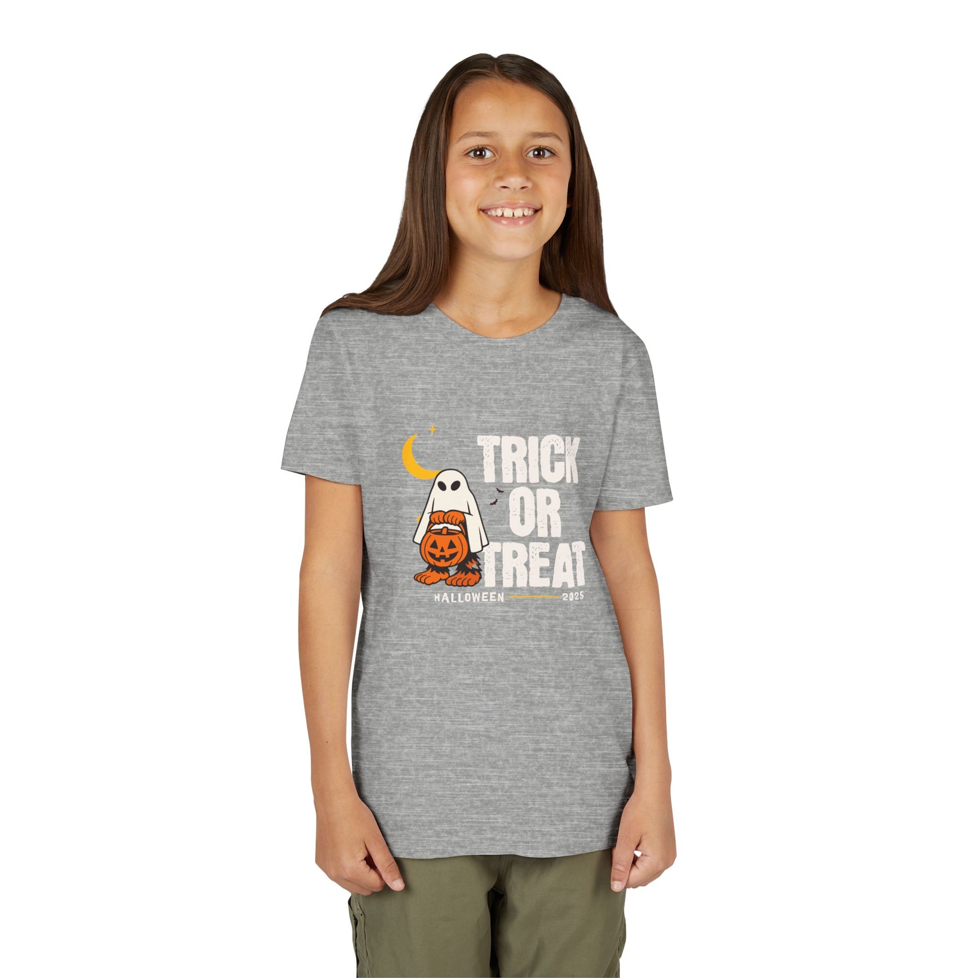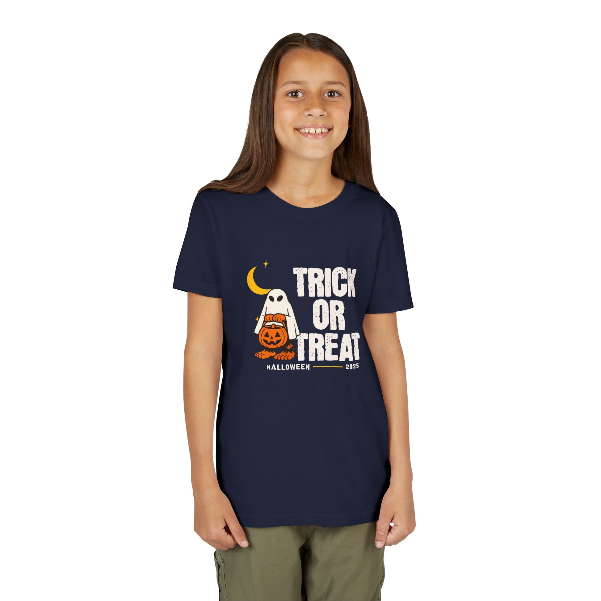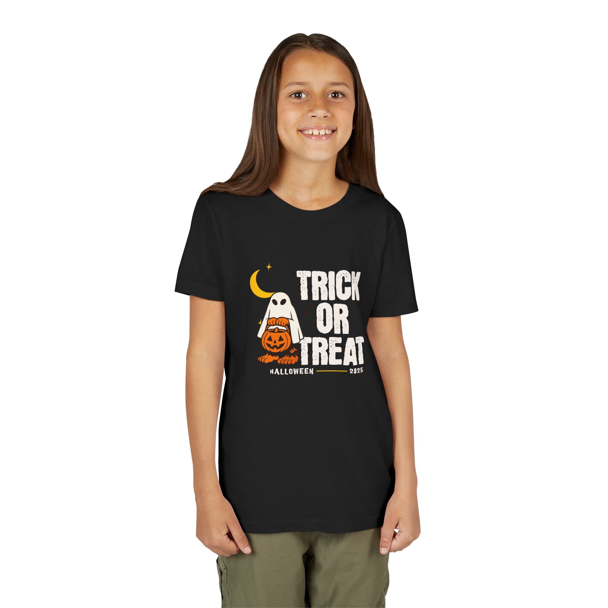 Trick or Treat in style with this extra lightweight, airlume-combed, ring-spun cotton tee. Perfect for kids to wear during Halloween festivities or any casual day out. The retail fit ensures a comfy and modern style that kids will love.