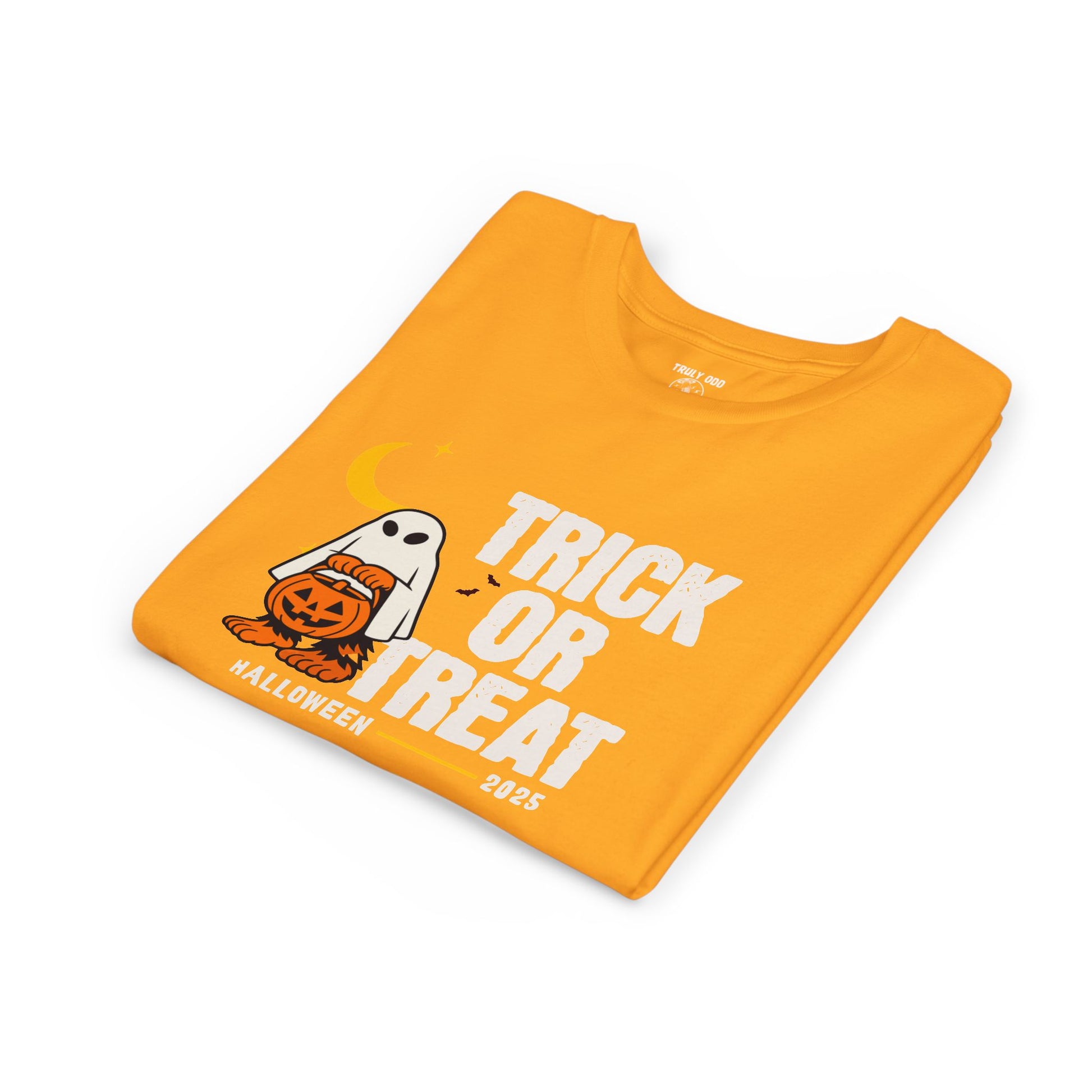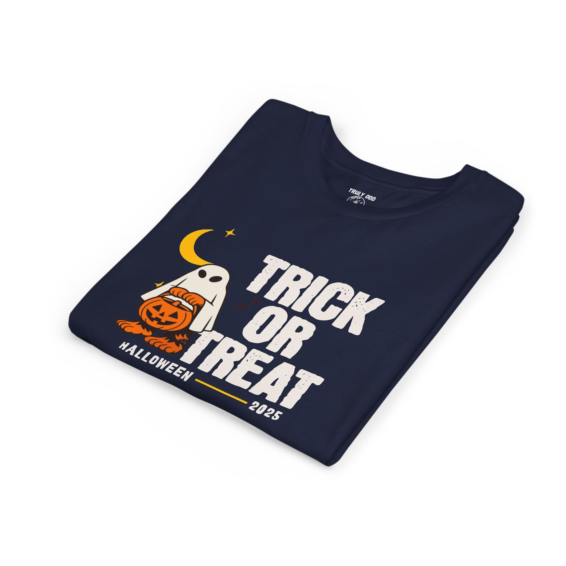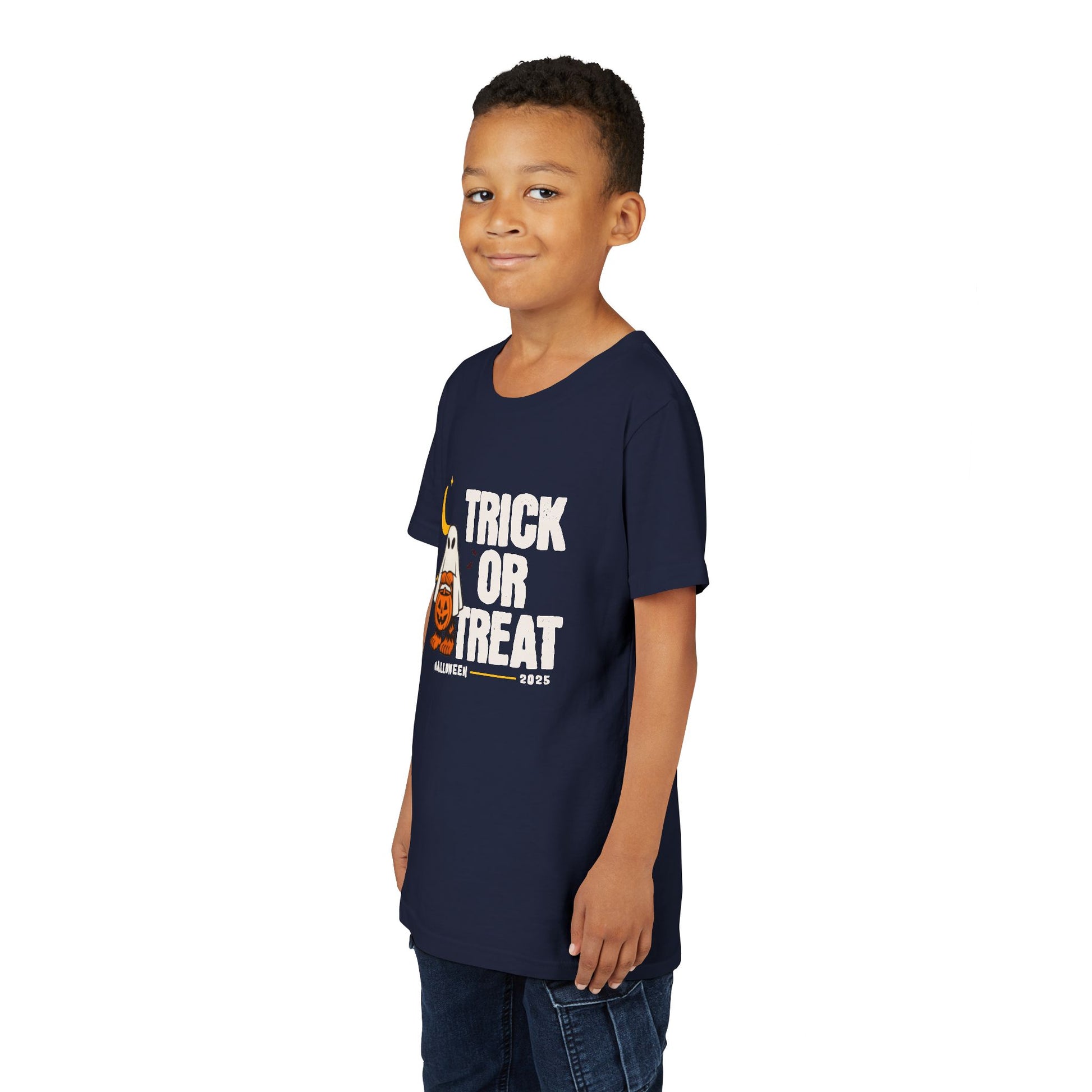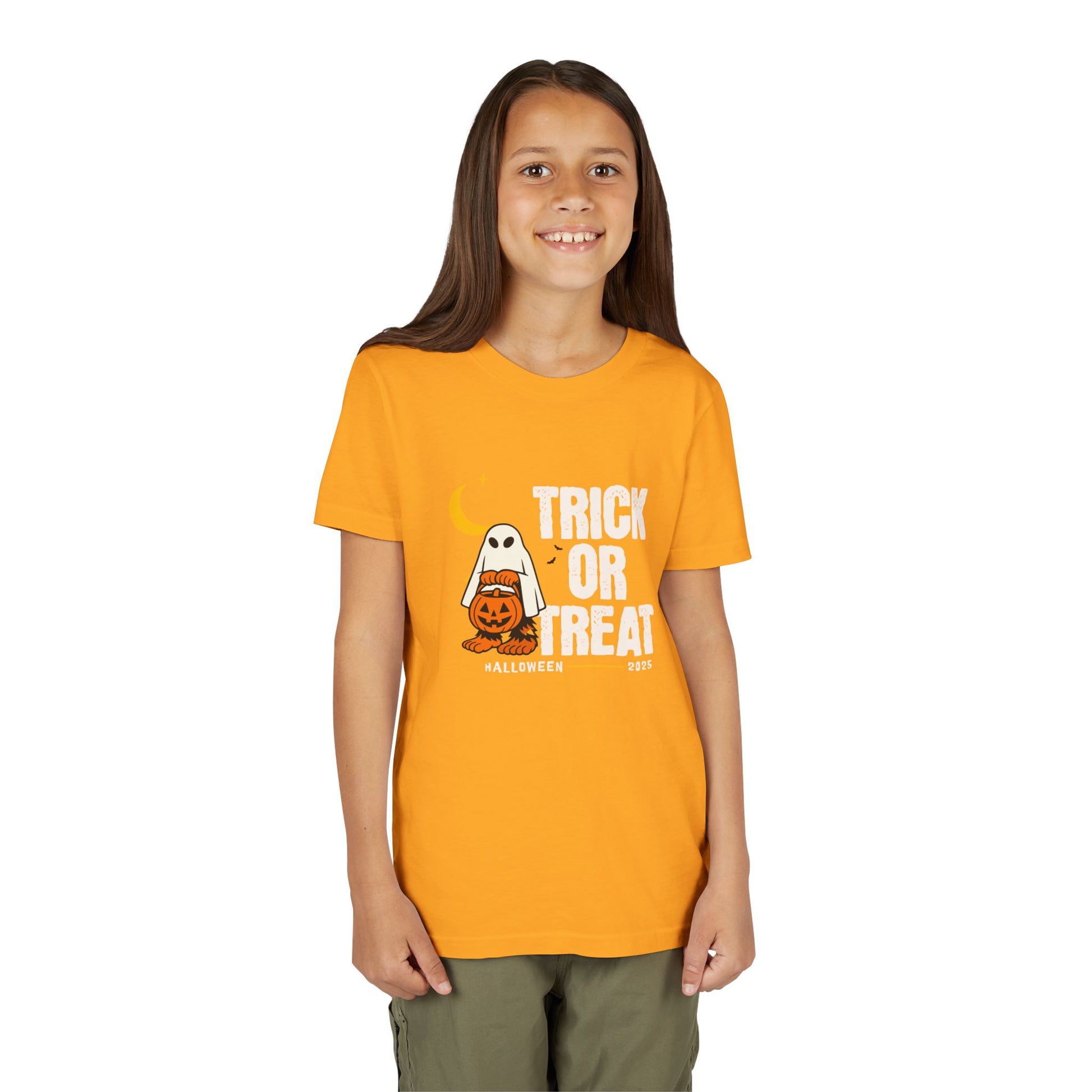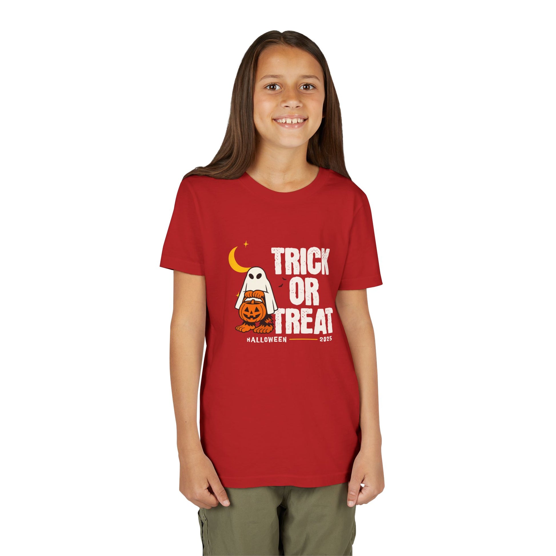 Trick or Treat in style with this extra lightweight, airlume-combed, ring-spun cotton tee. Perfect for kids to wear during Halloween festivities or any casual day out. The retail fit ensures a comfy and modern style that kids will love.